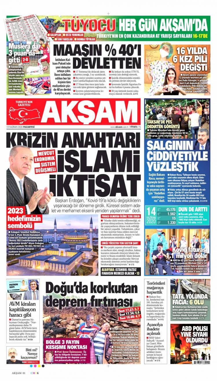 * Günün Ulusal Gazete Manşetleri – 15 06 2020Ulusal Gazetelerin 1. sayfaları Haber Merkezi Yayınlanma: 15.06.2020 - 11:50 Son güncellenme: 28.01.2025 - 21:50 Akşam