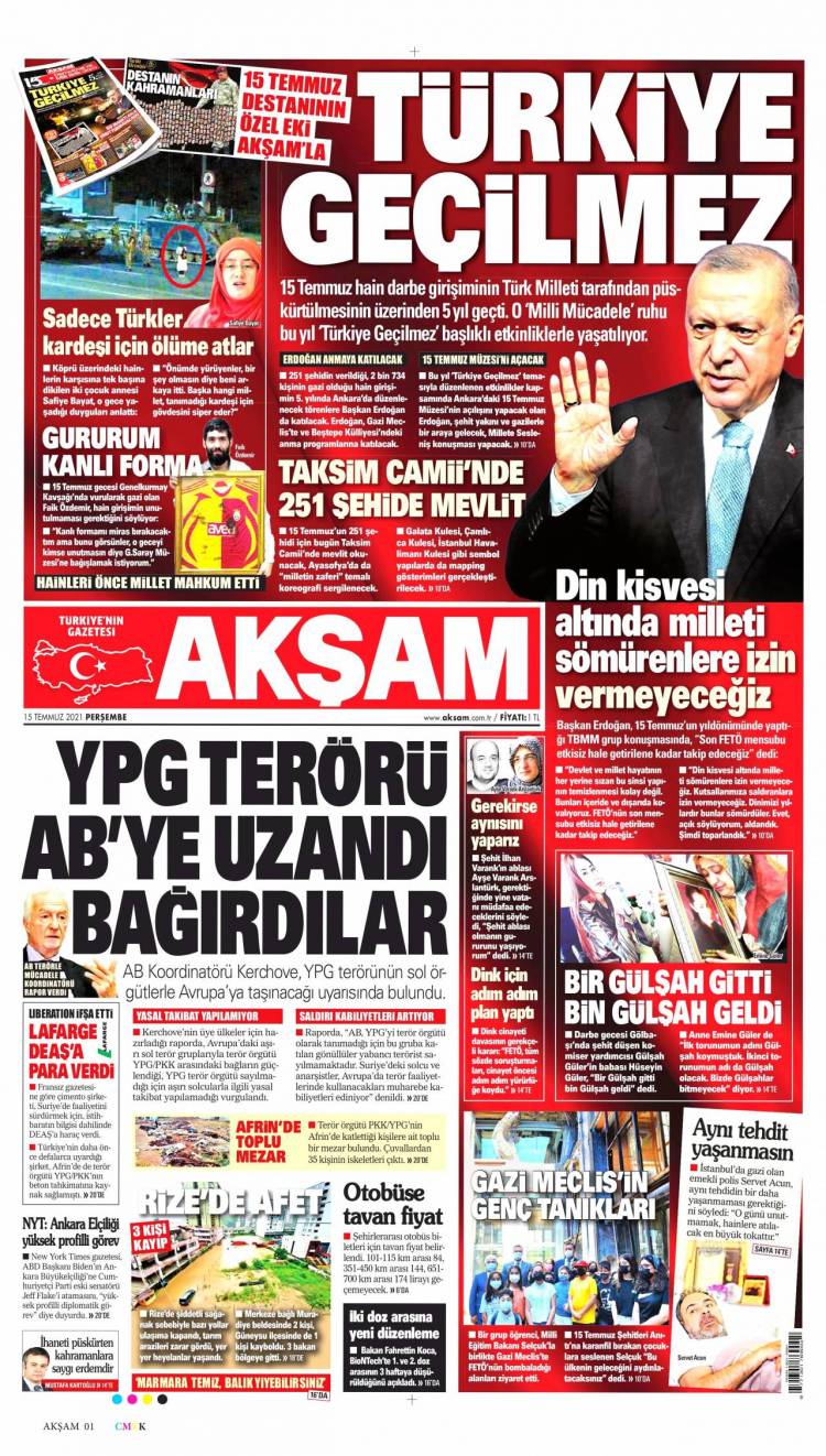 * Günün Ulusal Gazete Manşetleri – 15 07 2021Ulusal Gazetelerin 1. sayfaları Haber Merkezi Yayınlanma: 15.07.2021 - 11:50 Son güncellenme: 28.01.2025 - 16:08 Akşam