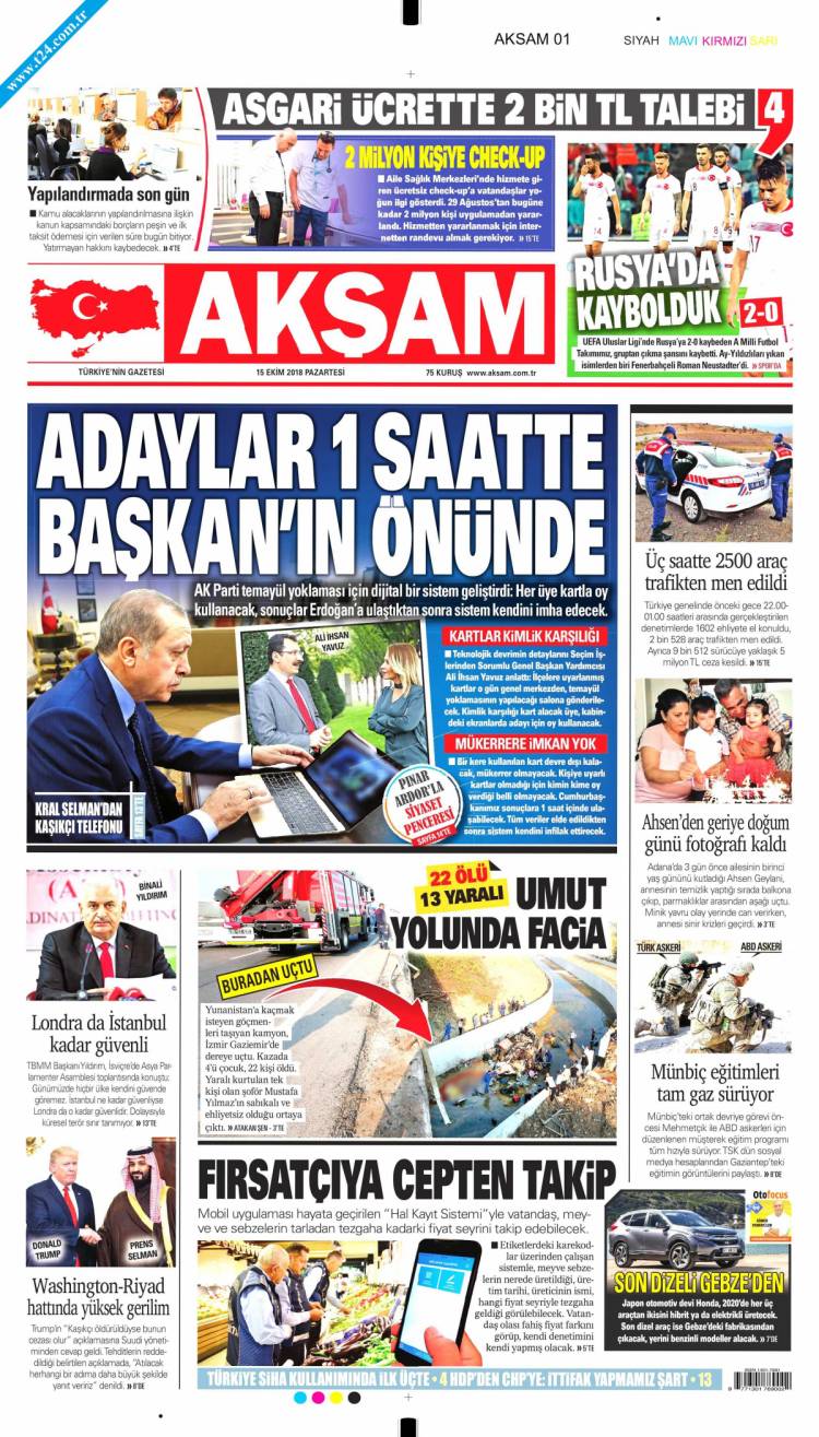 * Günün Ulusal Gazete Manşetleri – 15 10 2018Ulusal Gazetelerin 1. sayfaları Haber Merkezi Yayınlanma: 15.10.2018 - 11:50 Son güncellenme: 29.01.2025 - 06:40 Akşam