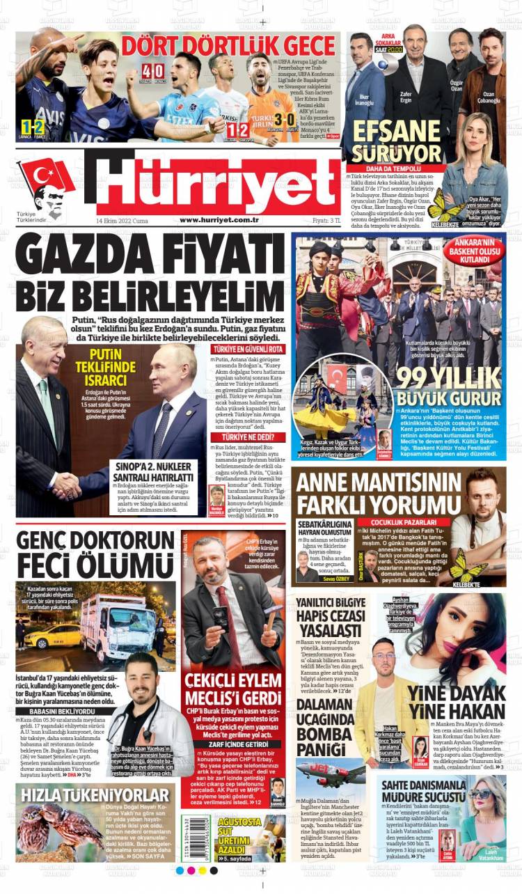* Günün Ulusal Gazete Manşetleri – 15 10 2022Ulusal Gazetelerin 1. sayfaları Haber Merkezi Yayınlanma: 15.10.2022 - 11:50 Son güncellenme: 28.01.2025 - 09:43 Hürriyet