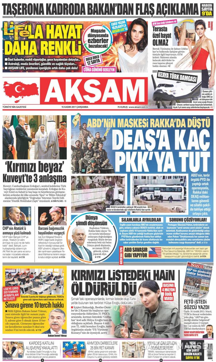 * Günün Ulusal Gazete Manşetleri – 15 11 2017Ulusal Gazetelerin 1. sayfaları Haber Merkezi Yayınlanma: 15.11.2017 - 11:50 Son güncellenme: 29.01.2025 - 17:35 Akşam