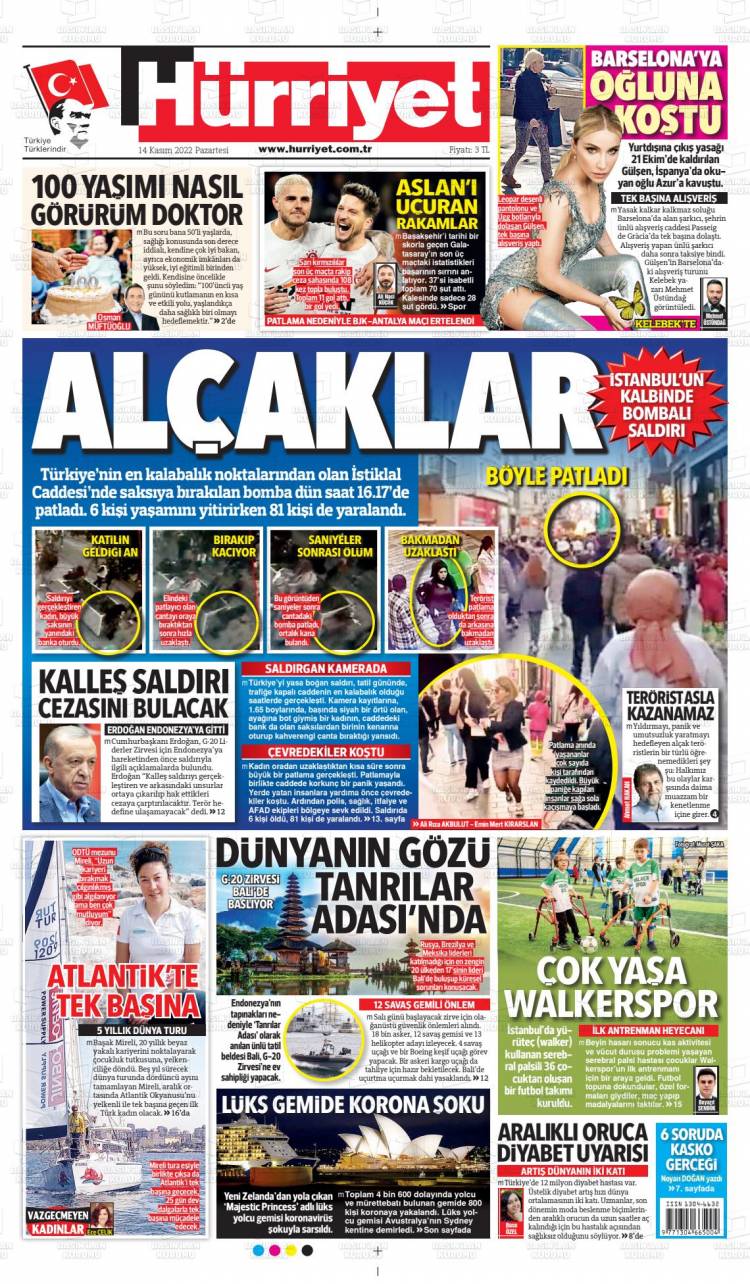 * Günün Ulusal Gazete Manşetleri – 15 11 2022Ulusal Gazetelerin 1. sayfaları Haber Merkezi Yayınlanma: 15.11.2022 - 11:50 Son güncellenme: 28.01.2025 - 09:19 Hürriyet