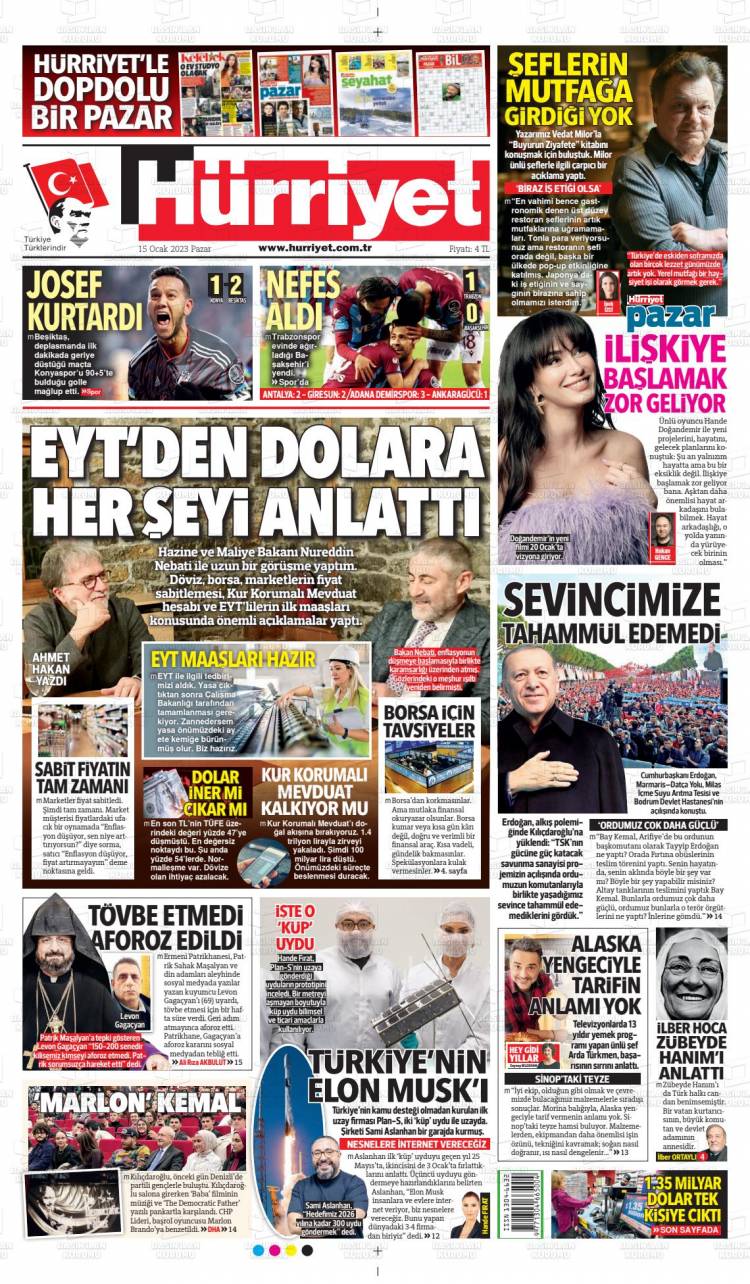 * Günün Ulusal Gazete Manşetleri – 16 01 2023Ulusal Gazetelerin 1. sayfaları Haber Merkezi Yayınlanma: 16.01.2023 - 11:50 Son güncellenme: 28.01.2025 - 08:33 Hürriyet