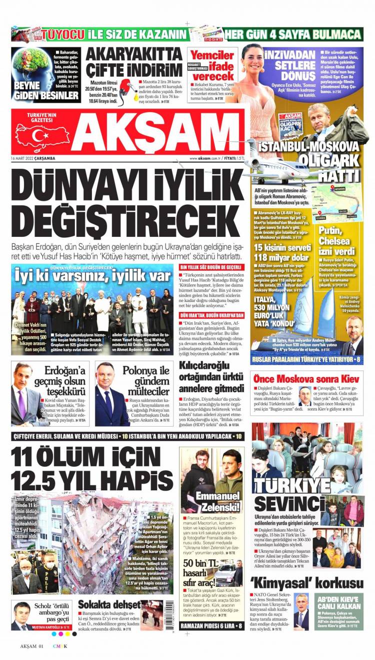 Günün Ulusal Gazete Manşetleri – 16 03 2022Ulusal Gazetelerin 1. sayfaları Haber Merkezi Yayınlanma: 16.03.2022 - 11:50 Son güncellenme: 28.01.2025 - 12:41 Akşam