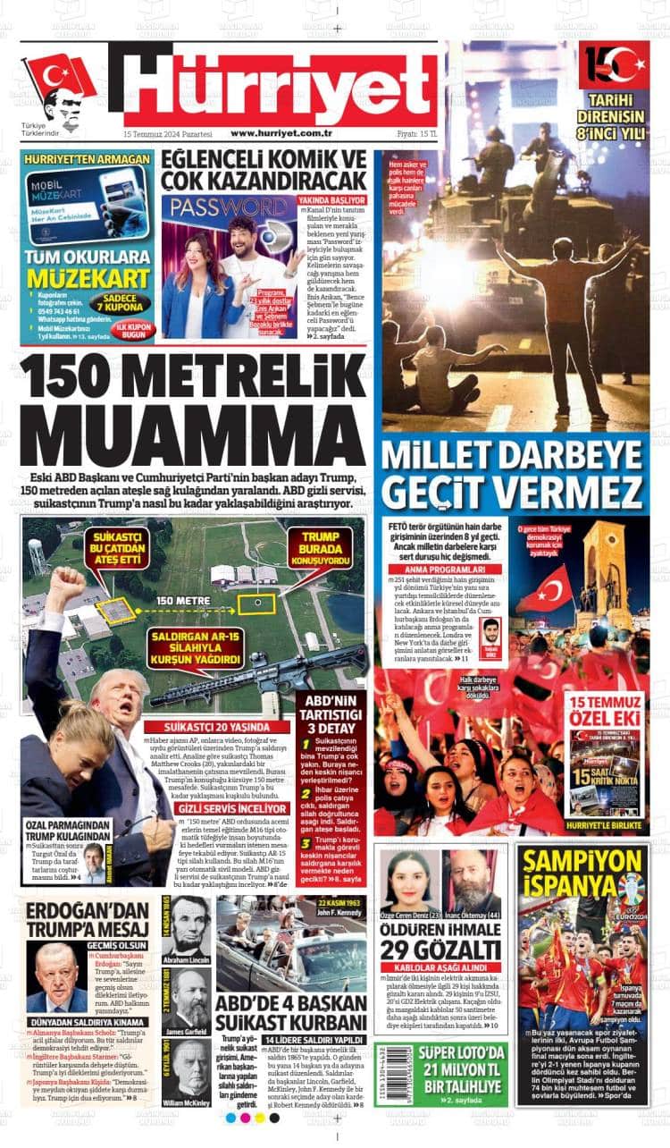 Günün Ulusal Gazete Manşetleri – 16 07 2024Ulusal Gazetelerin 1. sayfaları Haber Merkezi Yayınlanma: 16.07.2024 - 11:50 Son güncellenme: 28.01.2025 - 01:14 Hürriyet