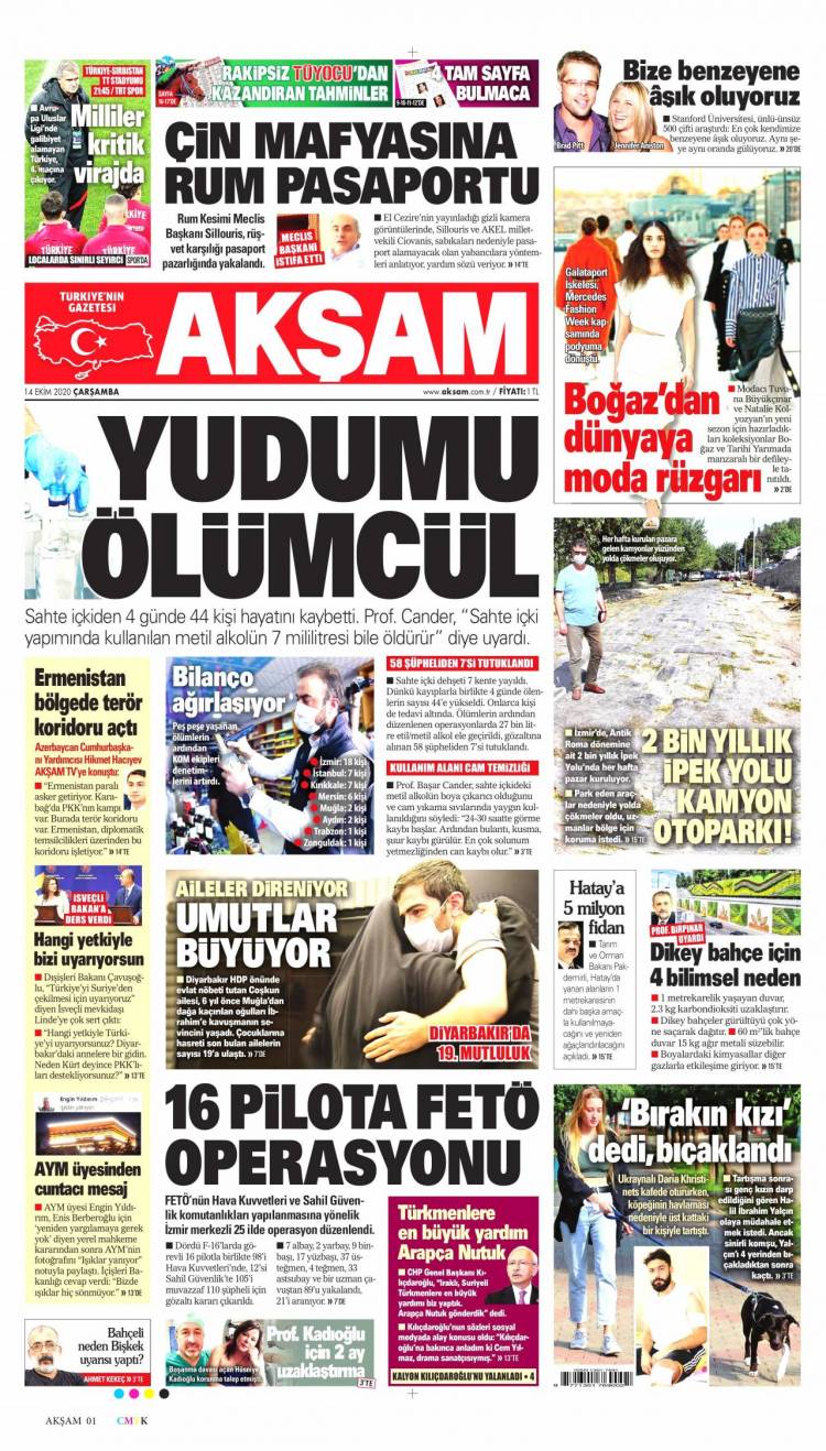 * Günün Ulusal Gazete Manşetleri – 16 10 2020Ulusal Gazetelerin 1. sayfaları Haber Merkezi Yayınlanma: 16.10.2020 - 11:50 Son güncellenme: 28.01.2025 - 19:57 Akşam