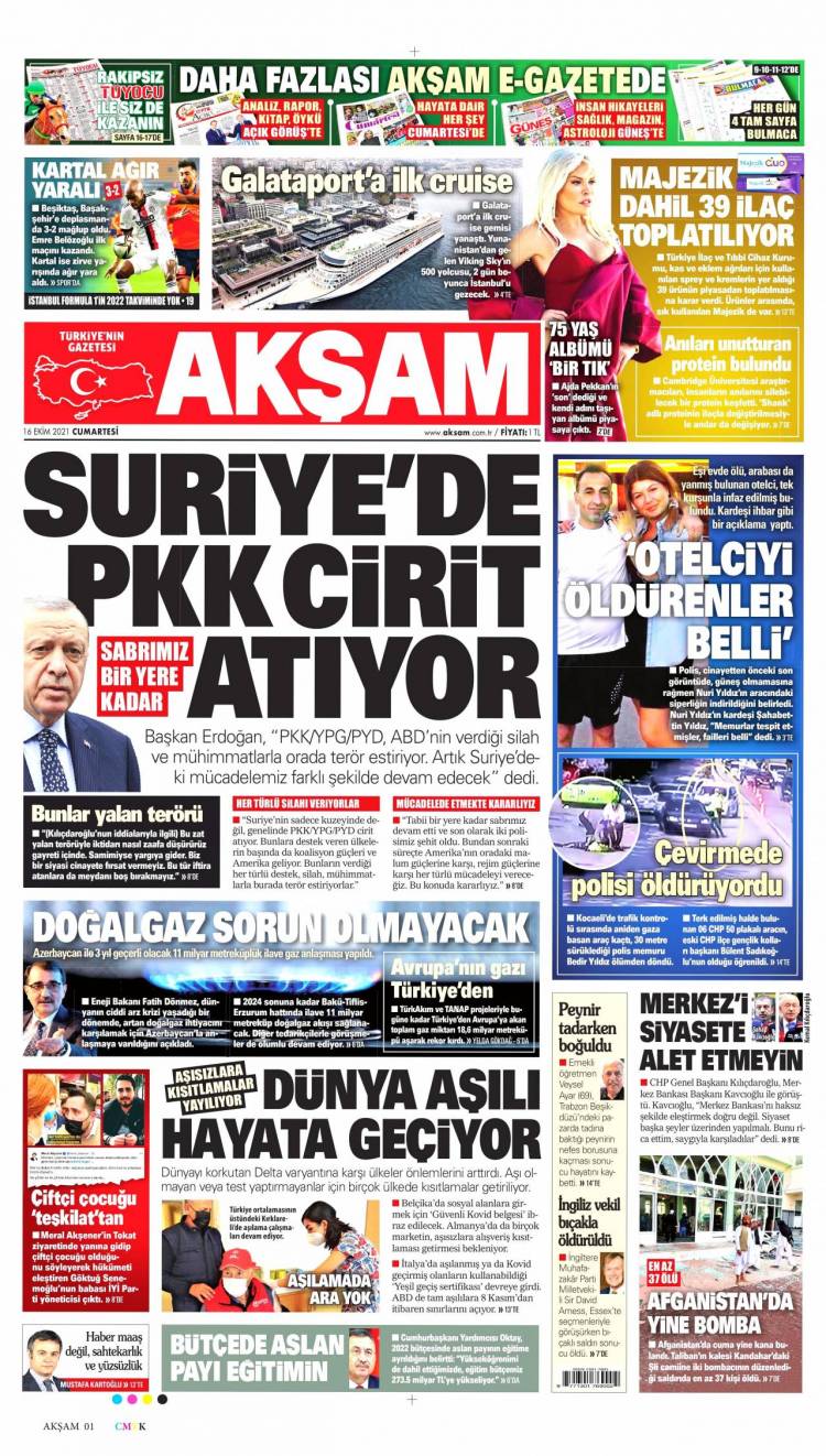 * Günün Ulusal Gazete Manşetleri – 16 10 2021Ulusal Gazetelerin 1. sayfaları Haber Merkezi Yayınlanma: 16.10.2021 - 11:50 Son güncellenme: 28.01.2025 - 14:49 Akşam