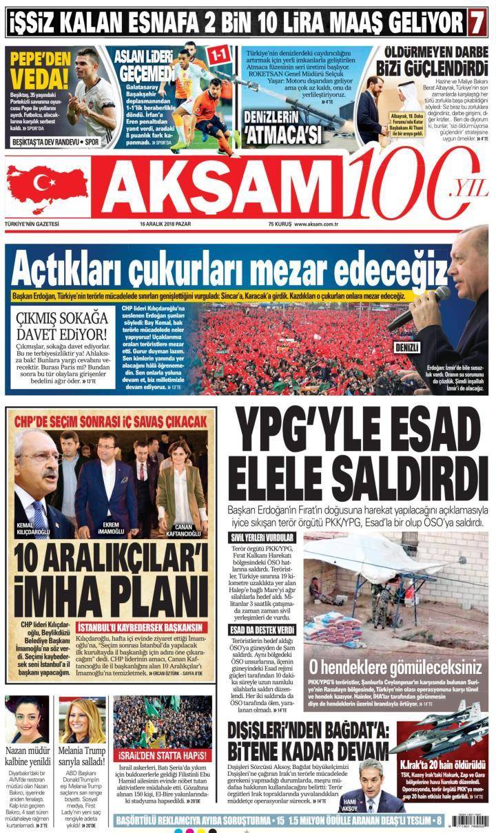 * Günün Ulusal Gazete Manşetleri – 16 12 2018Ulusal Gazetelerin 1. sayfaları Haber Merkezi Yayınlanma: 16.12.2018 - 11:50 Son güncellenme: 29.01.2025 - 05:28 Akşam