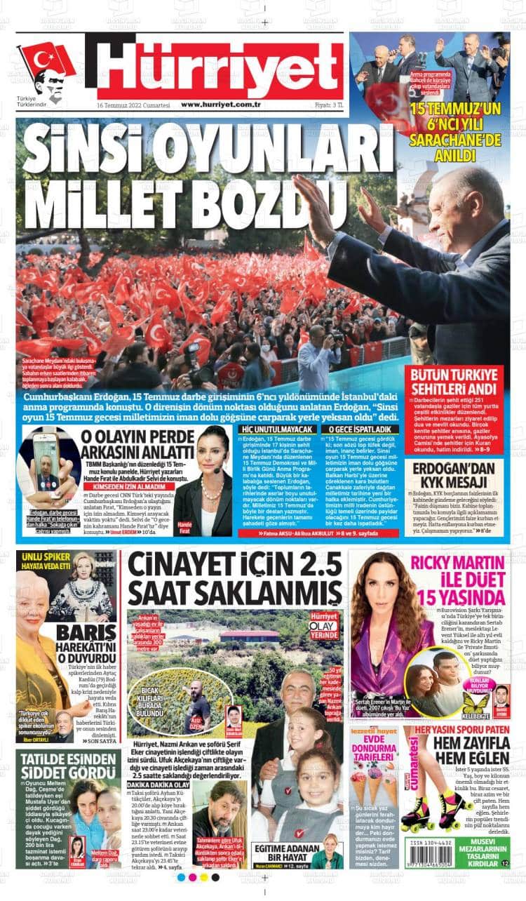 * Günün Ulusal Gazete Manşetleri – 17 07 2022Ulusal Gazetelerin 1. sayfaları Haber Merkezi Yayınlanma: 17.07.2022 - 11:50 Son güncellenme: 28.01.2025 - 10:56 Hürriyet