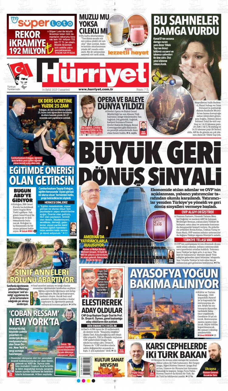 * Günün Ulusal Gazete Manşetleri – 17 09 2023Ulusal Gazetelerin 1. sayfaları Haber Merkezi Yayınlanma: 17.09.2023 - 11:50 Son güncellenme: 28.01.2025 - 05:21 Hürriyet