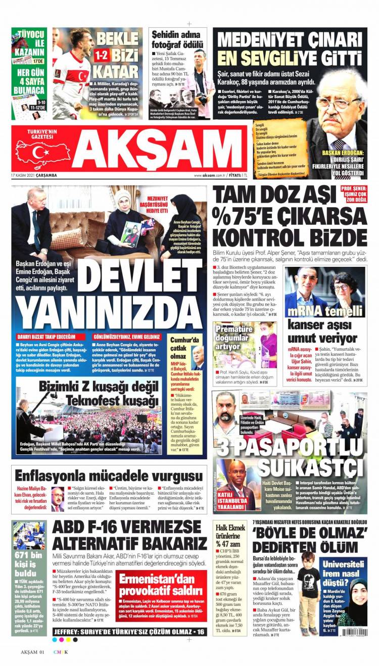 * Günün Ulusal Gazete Manşetleri – 17 11 2021Ulusal Gazetelerin 1. sayfaları Haber Merkezi Yayınlanma: 17.11.2021 - 11:50 Son güncellenme: 28.01.2025 - 14:22 Akşam