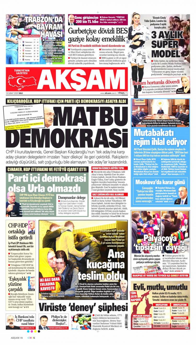 * Günün Ulusal Gazete Manşetleri – 18 02 2020Ulusal Gazetelerin 1. sayfaları Haber Merkezi Yayınlanma: 18.02.2020 - 11:50 Son güncellenme: 28.01.2025 - 23:34 Akşam