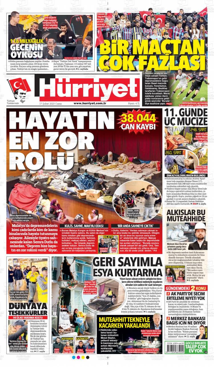 * Günün Ulusal Gazete Manşetleri – 18 02 2023Ulusal Gazetelerin 1. sayfaları Haber Merkezi Yayınlanma: 18.02.2023 - 11:50 Son güncellenme: 28.01.2025 - 08:07 Hürriyet