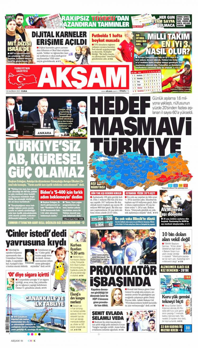 * Günün Ulusal Gazete Manşetleri – 18 06 2021Ulusal Gazetelerin 1. sayfaları Haber Merkezi Yayınlanma: 18.06.2021 - 11:50 Son güncellenme: 28.01.2025 - 16:30 Akşam