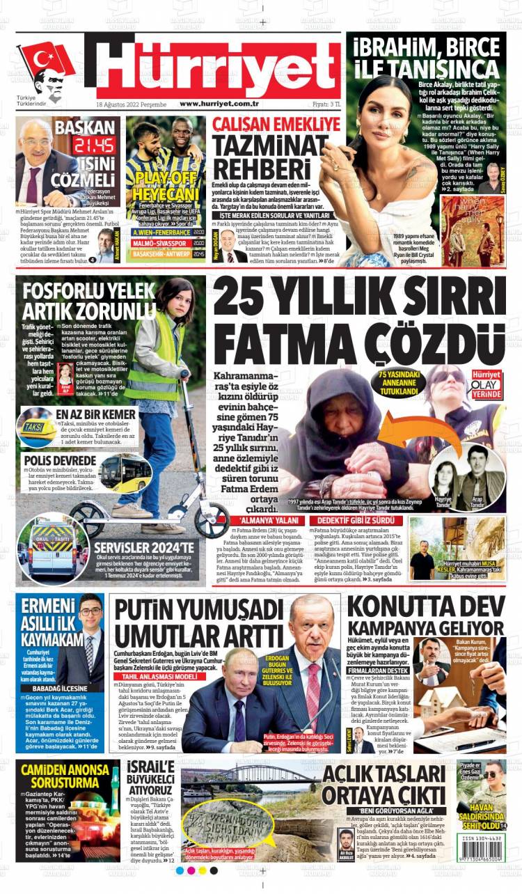 * Günün Ulusal Gazete Manşetleri – 18 08 2022Ulusal Gazetelerin 1. sayfaları Haber Merkezi Yayınlanma: 18.08.2022 - 11:50 Son güncellenme: 28.01.2025 - 10:31 Hürriyet