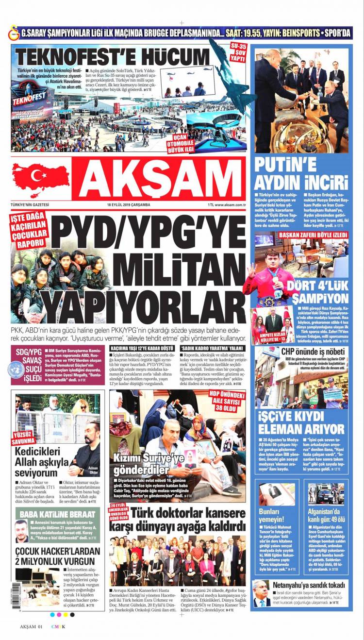 * Günün Ulusal Gazete Manşetleri – 18 09 2019Ulusal Gazetelerin 1. sayfaları Haber Merkezi Yayınlanma: 18.09.2019 - 11:50 Son güncellenme: 29.01.2025 - 01:19 Akşam