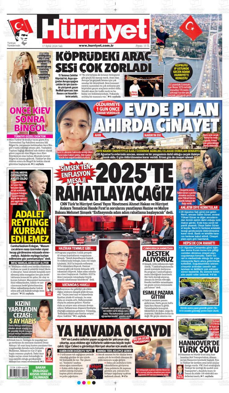 Günün Ulusal Gazete Manşetleri – 18 09 2024Ulusal Gazetelerin 1. sayfaları Haber Merkezi Yayınlanma: 18.09.2024 - 11:50 Son güncellenme: 28.01.2025 - 00:03 Hürriyet