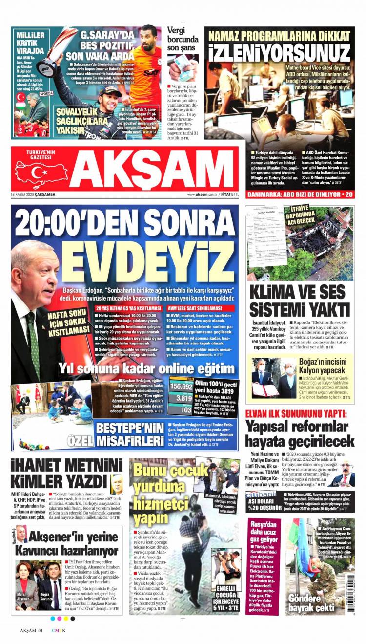 * Günün Ulusal Gazete Manşetleri – 18 11 2020Ulusal Gazetelerin 1. sayfaları Haber Merkezi Yayınlanma: 18.11.2020 - 11:50 Son güncellenme: 28.01.2025 - 19:28 Akşam