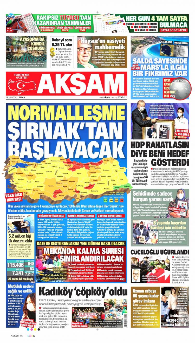 Günün Ulusal Gazete Manşetleri – 19 02 2021Ulusal Gazetelerin 1. sayfaları Haber Merkezi Yayınlanma: 19.02.2021 - 11:50 Son güncellenme: 28.01.2025 - 18:09 Akşam