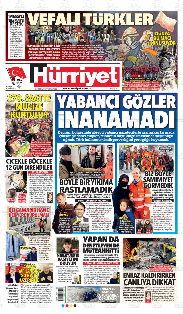 * Günün Ulusal Gazete Manşetleri – 19 02 2023Ulusal Gazetelerin 1. sayfaları Haber Merkezi Yayınlanma: 19.02.2023 - 11:50 Son güncellenme: 28.01.2025 - 08:06 Hürriyet