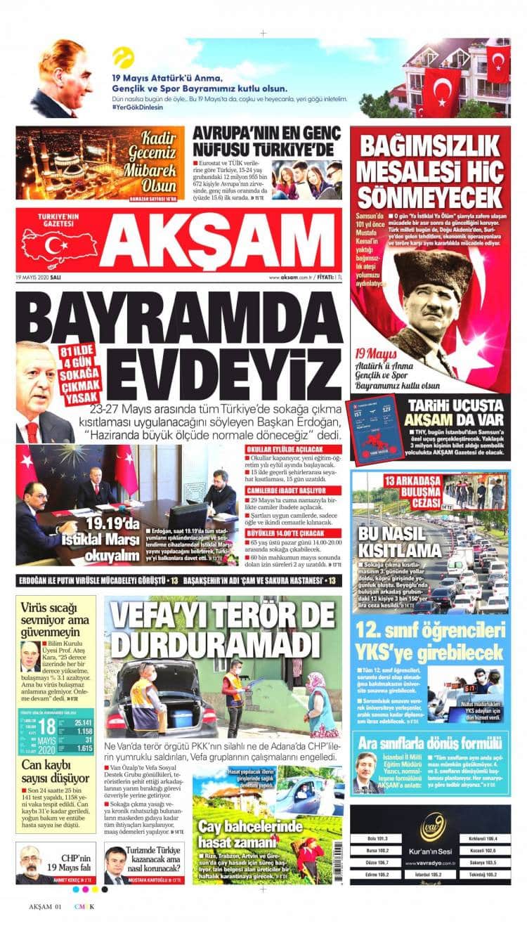 * Günün Ulusal Gazete Manşetleri – 19 05 2020Ulusal Gazetelerin 1. sayfaları Haber Merkezi Yayınlanma: 19.05.2020 - 11:50 Son güncellenme: 28.01.2025 - 22:16 Akşam