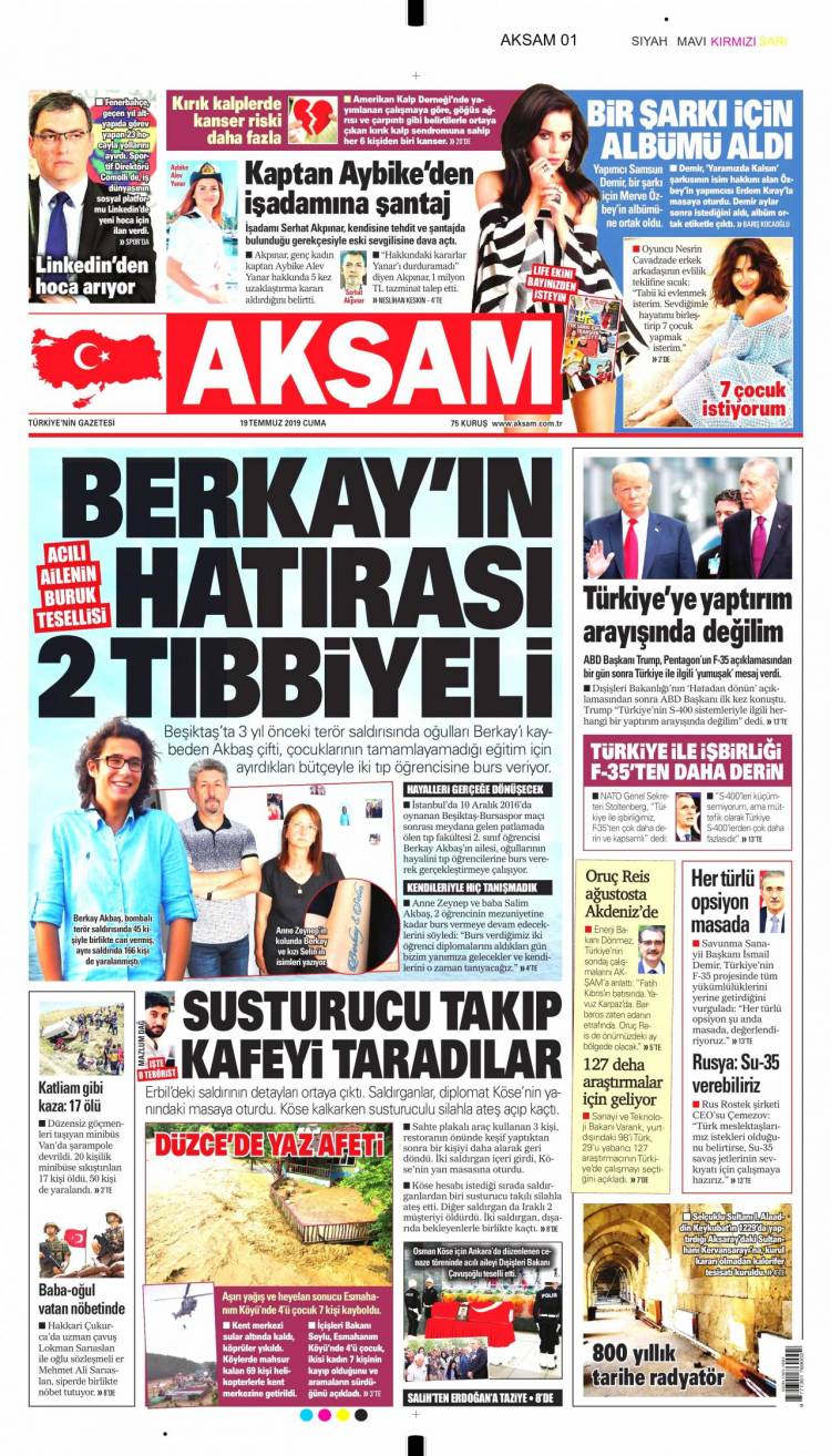 Günün Ulusal Gazete Manşetleri – 19 07 2019Ulusal Gazetelerin 1. sayfaları Haber Merkezi Yayınlanma: 19.07.2019 - 11:50 Son güncellenme: 29.01.2025 - 02:08 Akşam