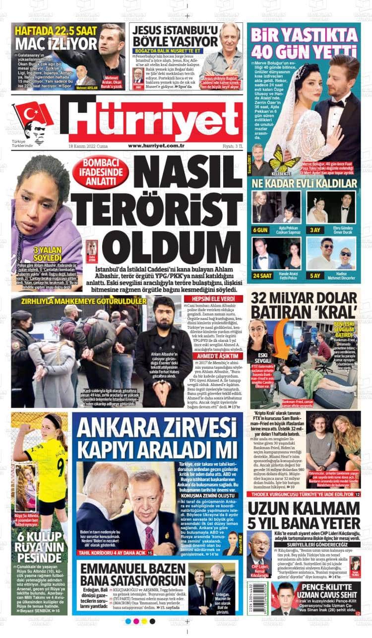 Günün Ulusal Gazete Manşetleri – 19 11 2022Ulusal Gazetelerin 1. sayfaları Haber Merkezi Yayınlanma: 19.11.2022 - 11:50 Son güncellenme: 28.01.2025 - 09:16 Hürriyet