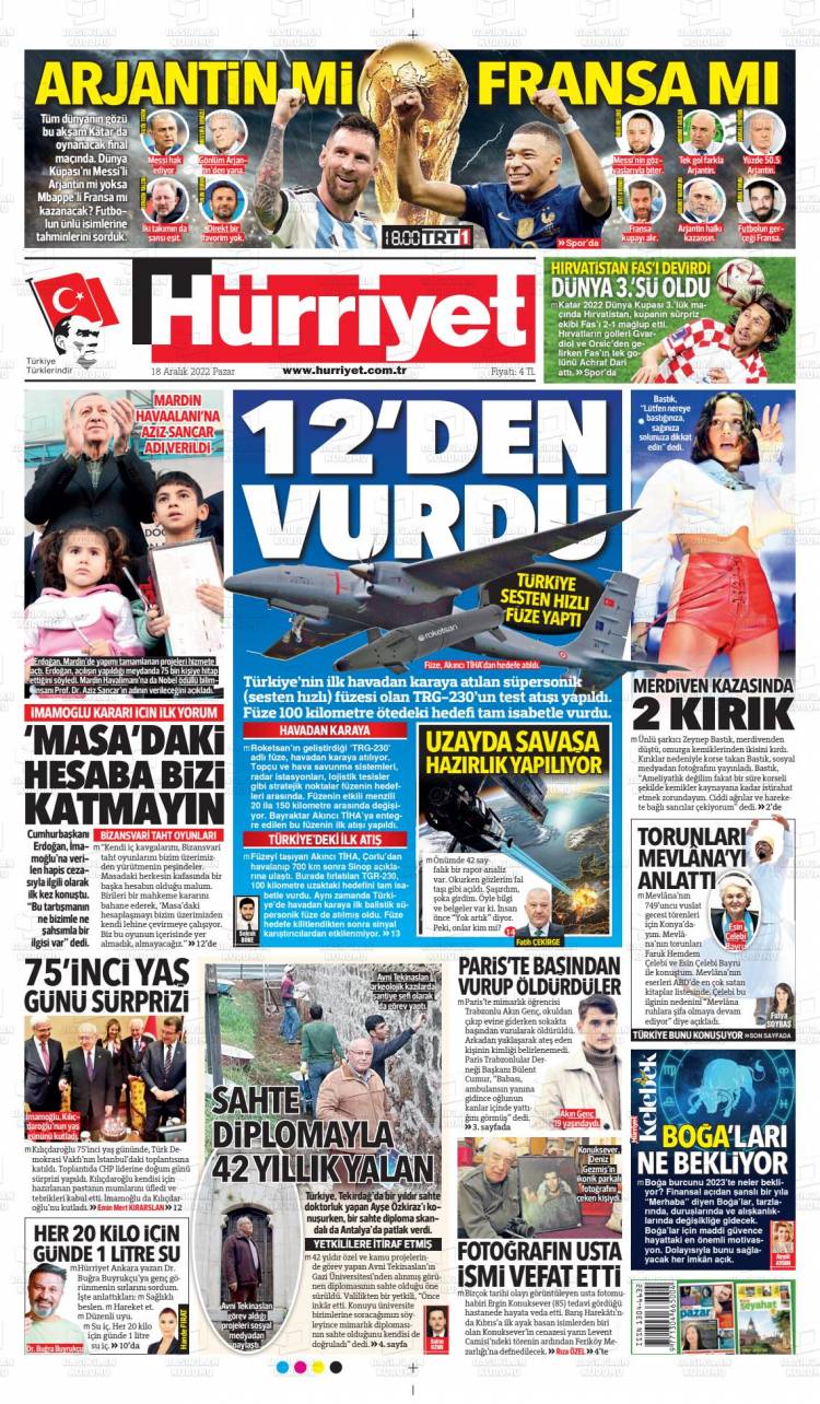 * Günün Ulusal Gazete Manşetleri – 19 12 2022Ulusal Gazetelerin 1. sayfaları Haber Merkezi Yayınlanma: 19.12.2022 - 11:50 Son güncellenme: 28.01.2025 - 08:52 Hürriyet