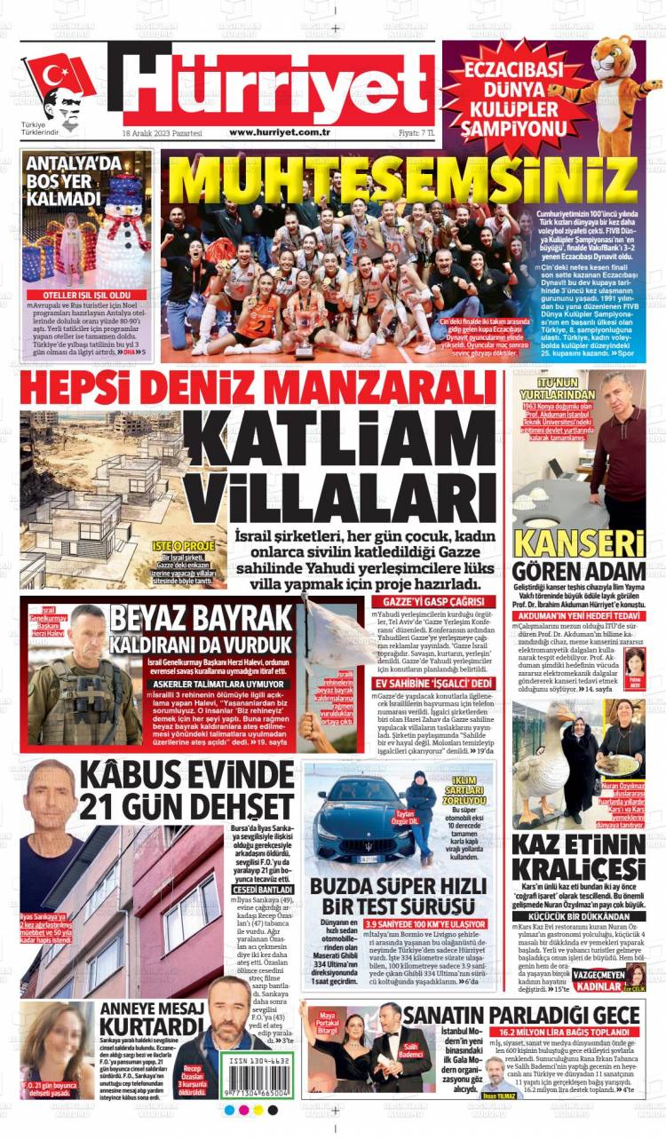 * Günün Ulusal Gazete Manşetleri – 19 12 2023Ulusal Gazetelerin 1. sayfaları Haber Merkezi Yayınlanma: 19.12.2023 - 11:50 Son güncellenme: 28.01.2025 - 03:56 Hürriyet