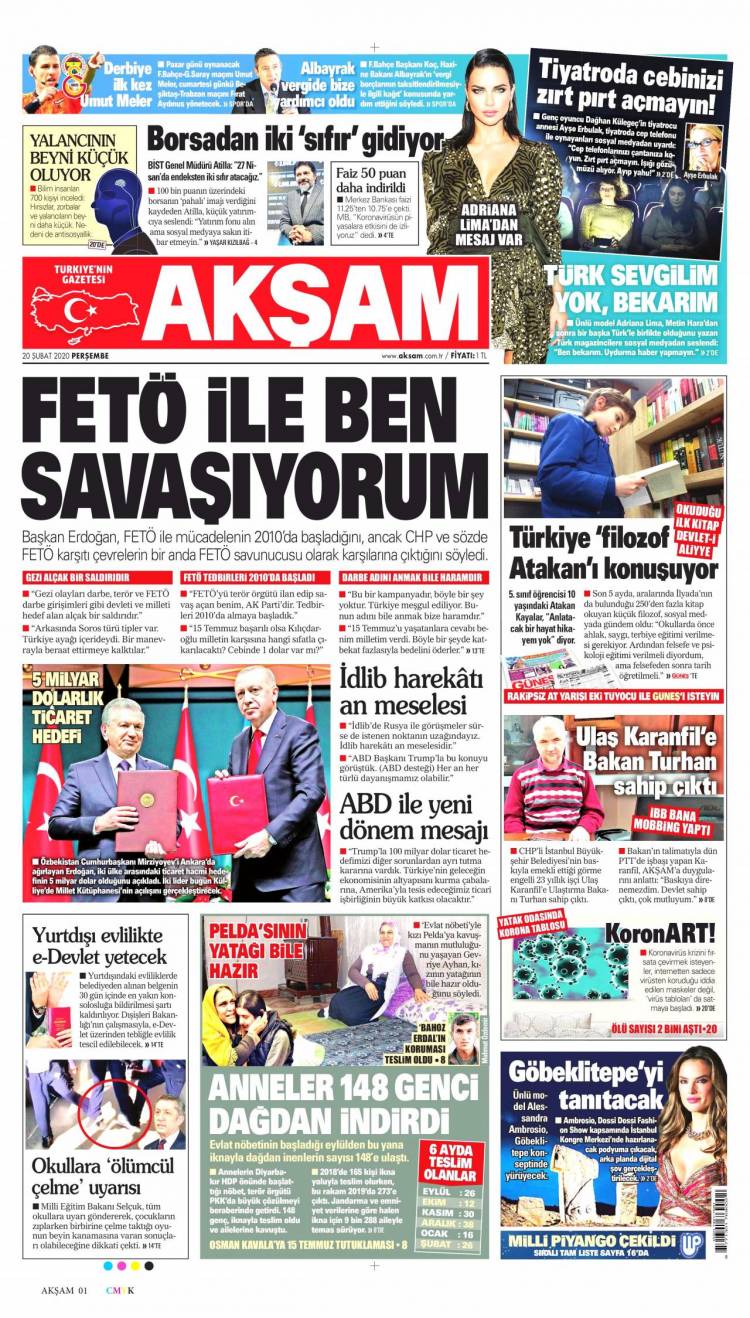 * Günün Ulusal Gazete Manşetleri – 20 02 2020Ulusal Gazetelerin 1. sayfaları Haber Merkezi Yayınlanma: 20.02.2020 - 11:50 Son güncellenme: 28.01.2025 - 23:32 Akşam