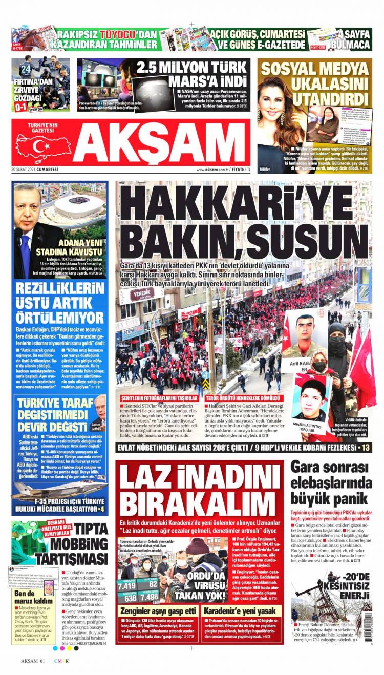 * Günün Ulusal Gazete Manşetleri – 20 02 2021Ulusal Gazetelerin 1. sayfaları Haber Merkezi Yayınlanma: 20.02.2021 - 11:50 Son güncellenme: 28.01.2025 - 18:09 Akşam
