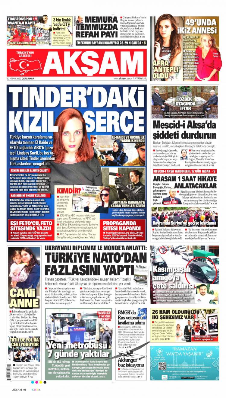 * Günün Ulusal Gazete Manşetleri – 20 04 2022Ulusal Gazetelerin 1. sayfaları Haber Merkezi Yayınlanma: 20.04.2022 - 11:50 Son güncellenme: 28.01.2025 - 12:11 Akşam