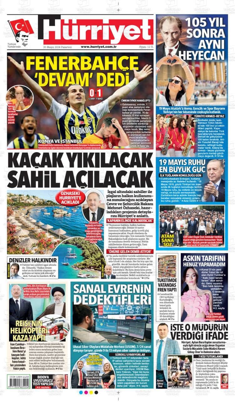 * Günün Ulusal Gazete Manşetleri – 20 05 2024Ulusal Gazetelerin 1. sayfaları Haber Merkezi Yayınlanma: 20.05.2024 - 11:50 Son güncellenme: 28.01.2025 - 02:04 Hürriyet