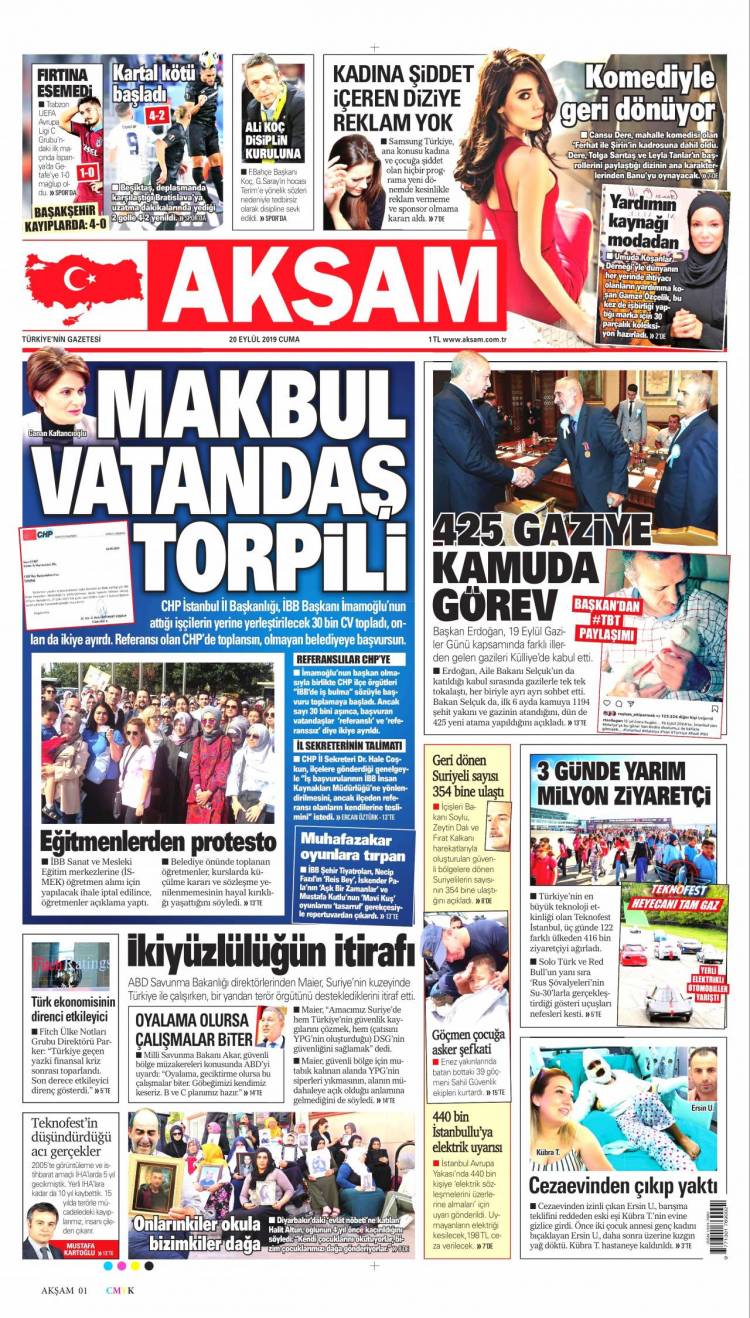 * Günün Ulusal Gazete Manşetleri – 20 09 2019Ulusal Gazetelerin 1. sayfaları Haber Merkezi Yayınlanma: 20.09.2019 - 11:50 Son güncellenme: 29.01.2025 - 01:17 Akşam