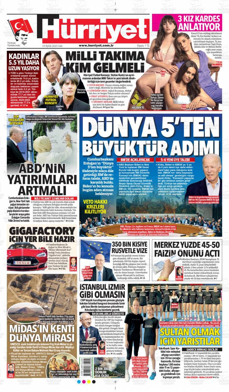 * Günün Ulusal Gazete Manşetleri – 20 09 2023Ulusal Gazetelerin 1. sayfaları Haber Merkezi Yayınlanma: 20.09.2023 - 11:50 Son güncellenme: 28.01.2025 - 05:18 Hürriyet