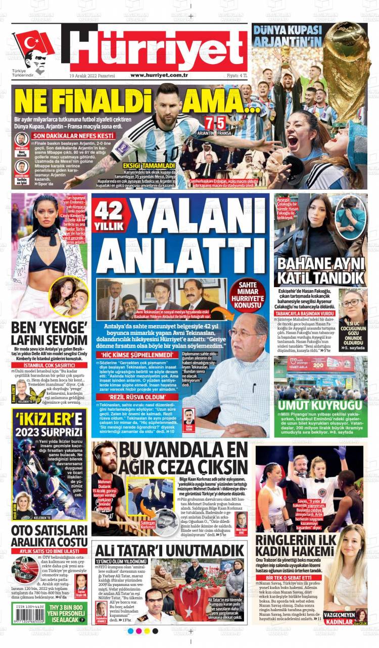 * Günün Ulusal Gazete Manşetleri – 20 12 2022Ulusal Gazetelerin 1. sayfaları Haber Merkezi Yayınlanma: 20.12.2022 - 11:50 Son güncellenme: 28.01.2025 - 08:51 Hürriyet