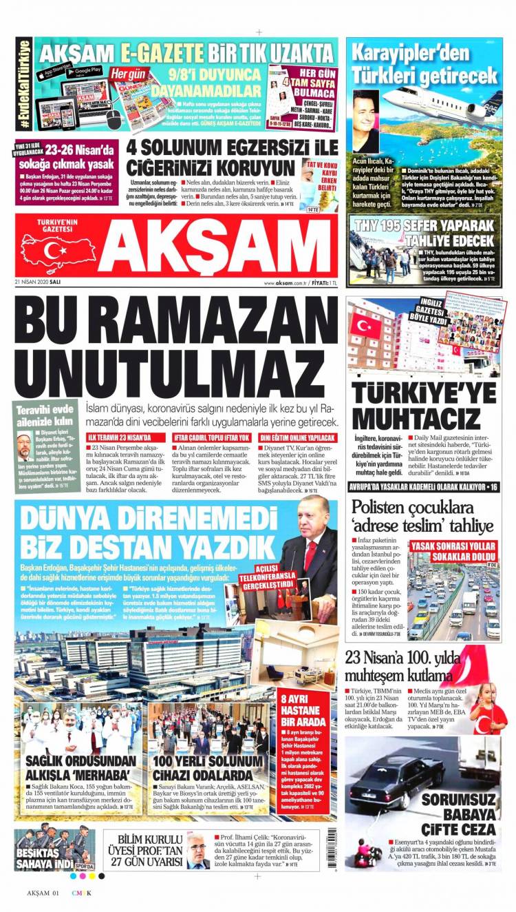 * Günün Ulusal Gazete Manşetleri – 21 04 2020Ulusal Gazetelerin 1. sayfaları Haber Merkezi Yayınlanma: 21.04.2020 - 11:50 Son güncellenme: 28.01.2025 - 22:42 Akşam