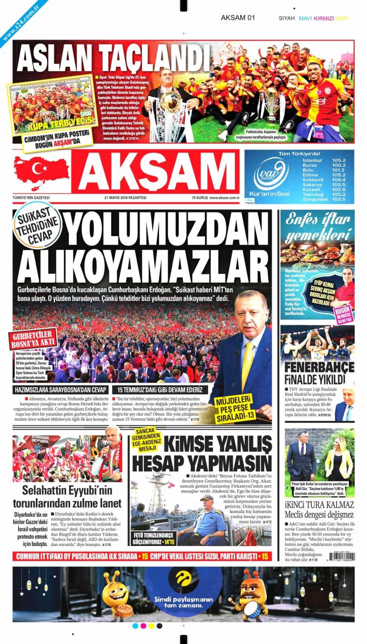 * Günün Ulusal Gazete Manşetleri – 21 05 2018Ulusal Gazetelerin 1. sayfaları Haber Merkezi Yayınlanma: 21.05.2018 - 11:50 Son güncellenme: 29.01.2025 - 09:40 Akşam
