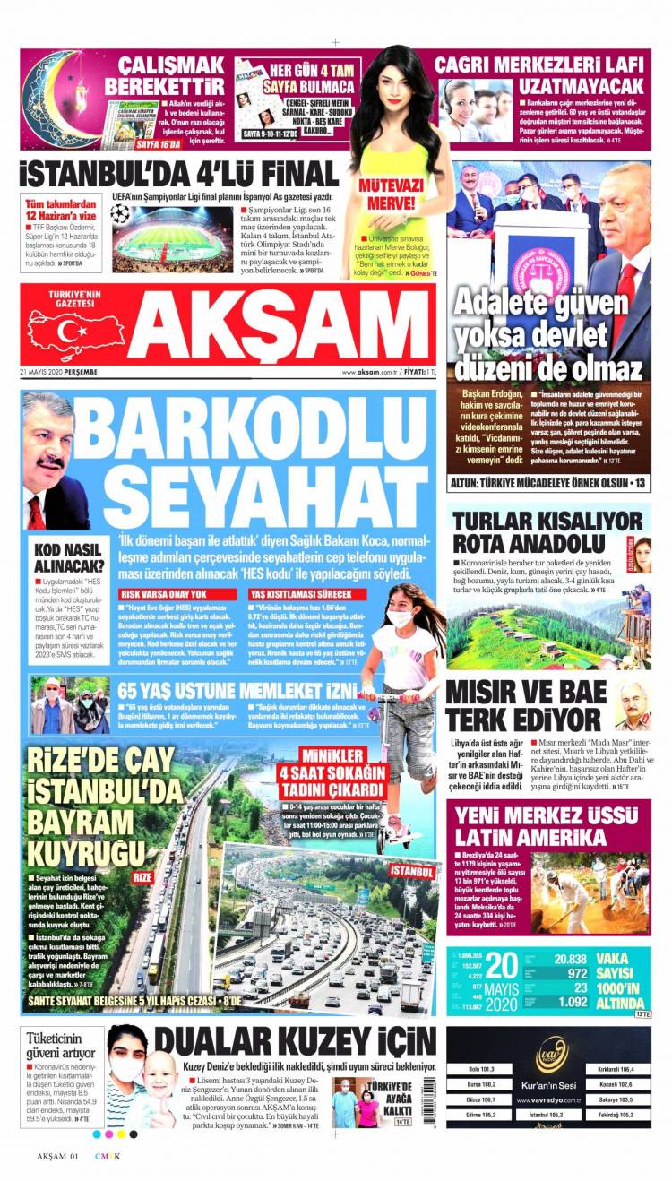 Günün Ulusal Gazete Manşetleri – 21 05 2020Ulusal Gazetelerin 1. sayfaları Haber Merkezi Yayınlanma: 21.05.2020 - 11:50 Son güncellenme: 28.01.2025 - 22:14 Akşam
