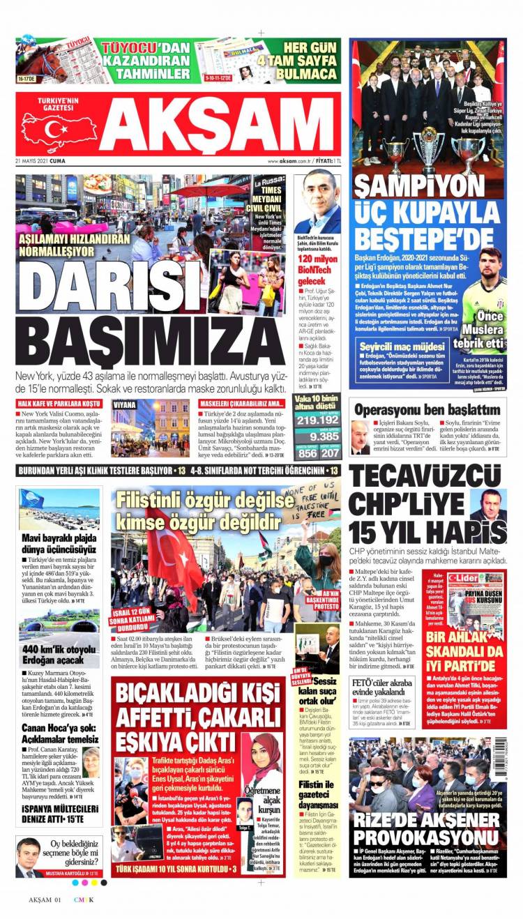 * Günün Ulusal Gazete Manşetleri – 21 05 2021Ulusal Gazetelerin 1. sayfaları Haber Merkezi Yayınlanma: 21.05.2021 - 11:50 Son güncellenme: 28.01.2025 - 16:53 Akşam