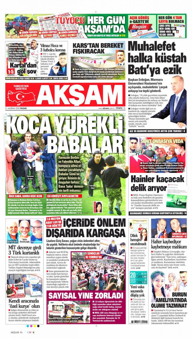 Günün Ulusal Gazete Manşetleri – 21 06 2020Ulusal Gazetelerin 1. sayfaları Haber Merkezi Yayınlanma: 21.06.2020 - 11:50 Son güncellenme: 28.01.2025 - 21:44 Akşam