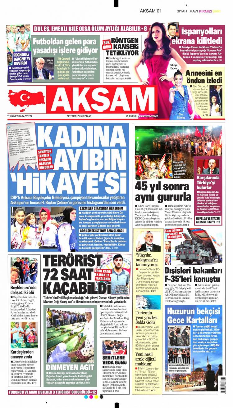 Günün Ulusal Gazete Manşetleri – 21 07 2019Ulusal Gazetelerin 1. sayfaları Haber Merkezi Yayınlanma: 21.07.2019 - 11:50 Son güncellenme: 29.01.2025 - 02:06 Akşam