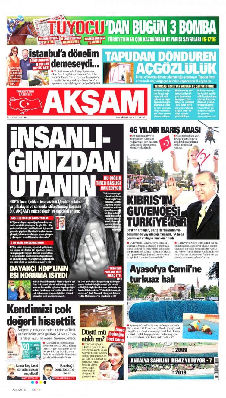 * Günün Ulusal Gazete Manşetleri – 21 07 2020Ulusal Gazetelerin 1. sayfaları Haber Merkezi Yayınlanma: 21.07.2020 - 11:50 Son güncellenme: 28.01.2025 - 21:15 Akşam