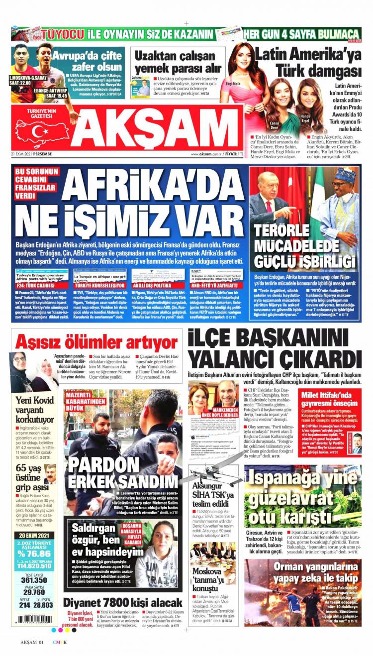 * Günün Ulusal Gazete Manşetleri – 21 10 2021Ulusal Gazetelerin 1. sayfaları Haber Merkezi Yayınlanma: 21.10.2021 - 11:50 Son güncellenme: 28.01.2025 - 14:45 Akşam