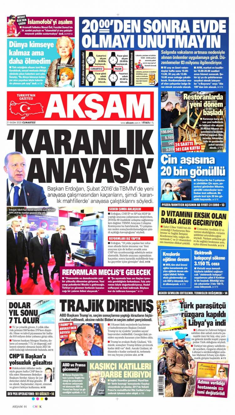 * Günün Ulusal Gazete Manşetleri – 21 11 2020Ulusal Gazetelerin 1. sayfaları Haber Merkezi Yayınlanma: 21.11.2020 - 11:50 Son güncellenme: 28.01.2025 - 19:26 Akşam
