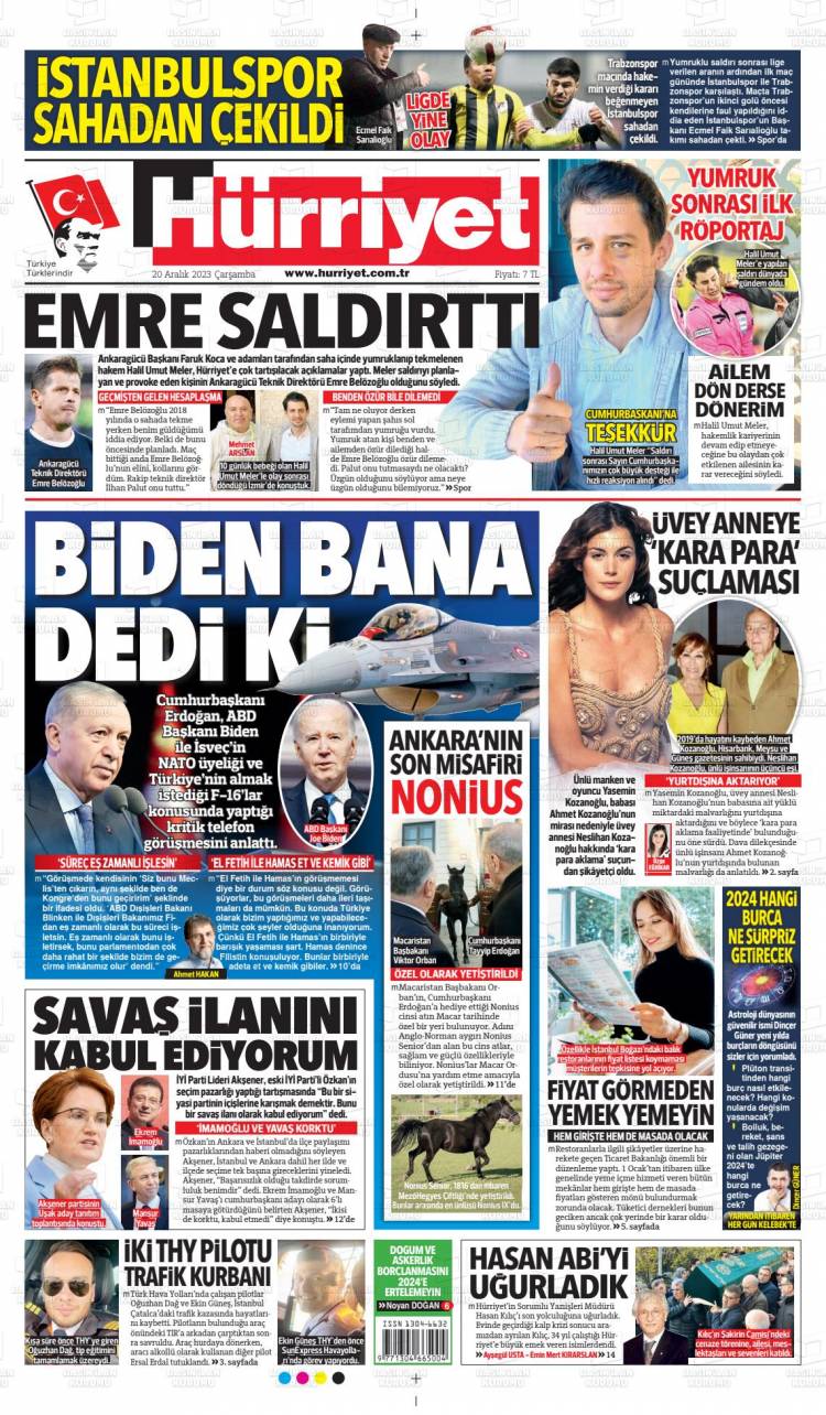 * Günün Ulusal Gazete Manşetleri – 21 12 2023Ulusal Gazetelerin 1. sayfaları Haber Merkezi Yayınlanma: 21.12.2023 - 11:50 Son güncellenme: 28.01.2025 - 03:55 Hürriyet