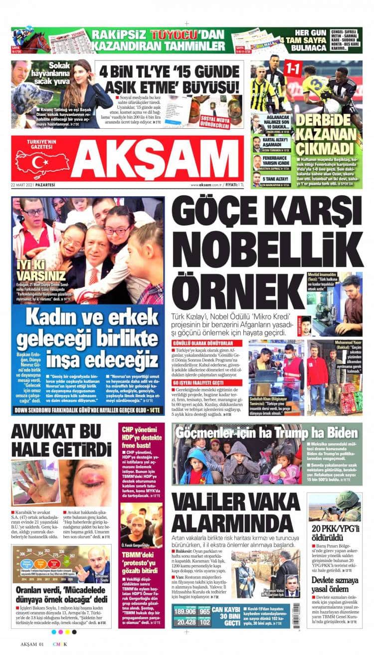 * Günün Ulusal Gazete Manşetleri – 22 03 2021Ulusal Gazetelerin 1. sayfaları Haber Merkezi Yayınlanma: 22.03.2021 - 11:50 Son güncellenme: 28.01.2025 - 17:44 Akşam