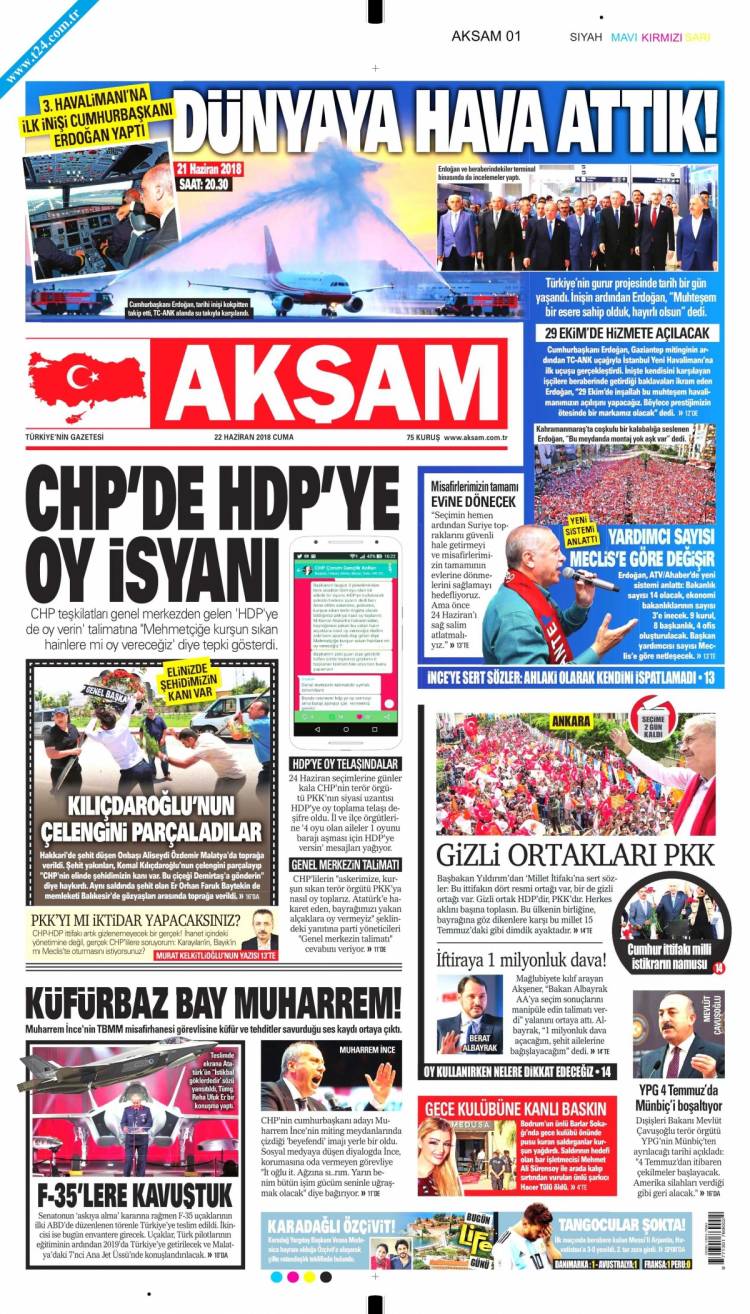 Günün Ulusal Gazete Manşetleri – 22 06 2018Ulusal Gazetelerin 1. sayfaları Haber Merkezi Yayınlanma: 22.06.2018 - 11:50 Son güncellenme: 29.01.2025 - 09:01 Akşam