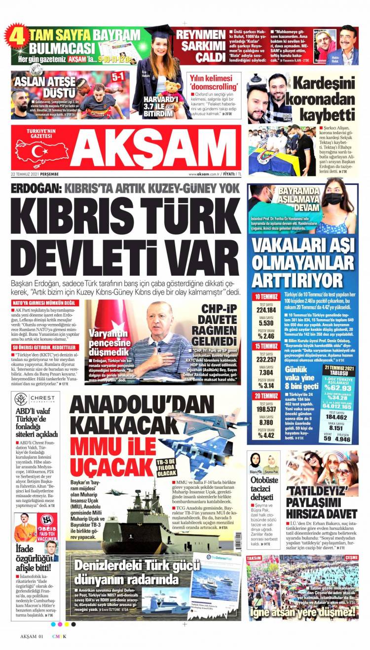 * Günün Ulusal Gazete Manşetleri – 22 07 2021Ulusal Gazetelerin 1. sayfaları Haber Merkezi Yayınlanma: 22.07.2021 - 11:50 Son güncellenme: 28.01.2025 - 16:02 Akşam