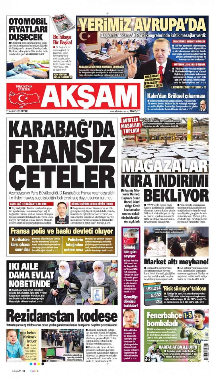 * Günün Ulusal Gazete Manşetleri – 22 11 2020Ulusal Gazetelerin 1. sayfaları Haber Merkezi Yayınlanma: 22.11.2020 - 11:50 Son güncellenme: 28.01.2025 - 19:25 Akşam